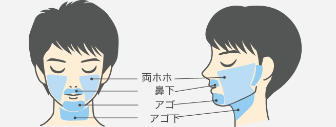 | ヒゲ全体 (鼻下・両頬・アゴ・アゴ下~首(正面)) |