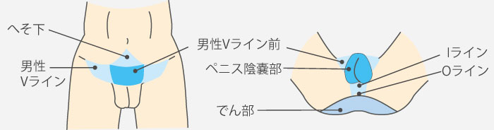| アンダーヘア全体Bコース (VIOライン+Vライン前+陰茎部+陰嚢部) |